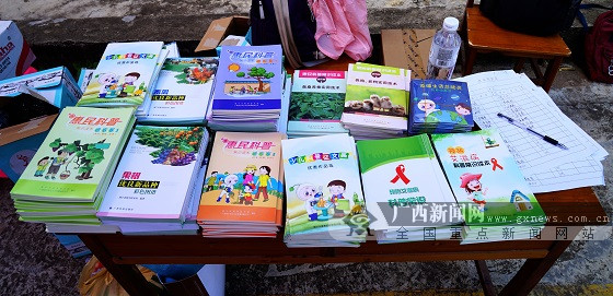 主办方赠送团黄村农民群众的科普读物。沙丘摄